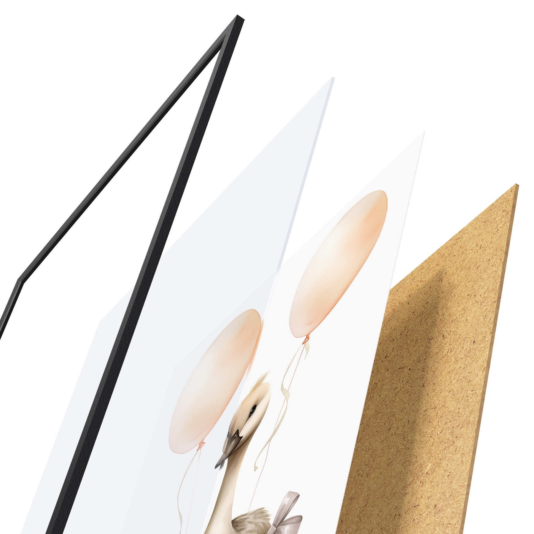 L’affiche encadrée est composée d’un cadre, d’un plexiglas, d’une image imprimée et d’un support en aggloméré. Elle est prête à être accrochée au mur grâce aux fixations situées à l’arrière.
