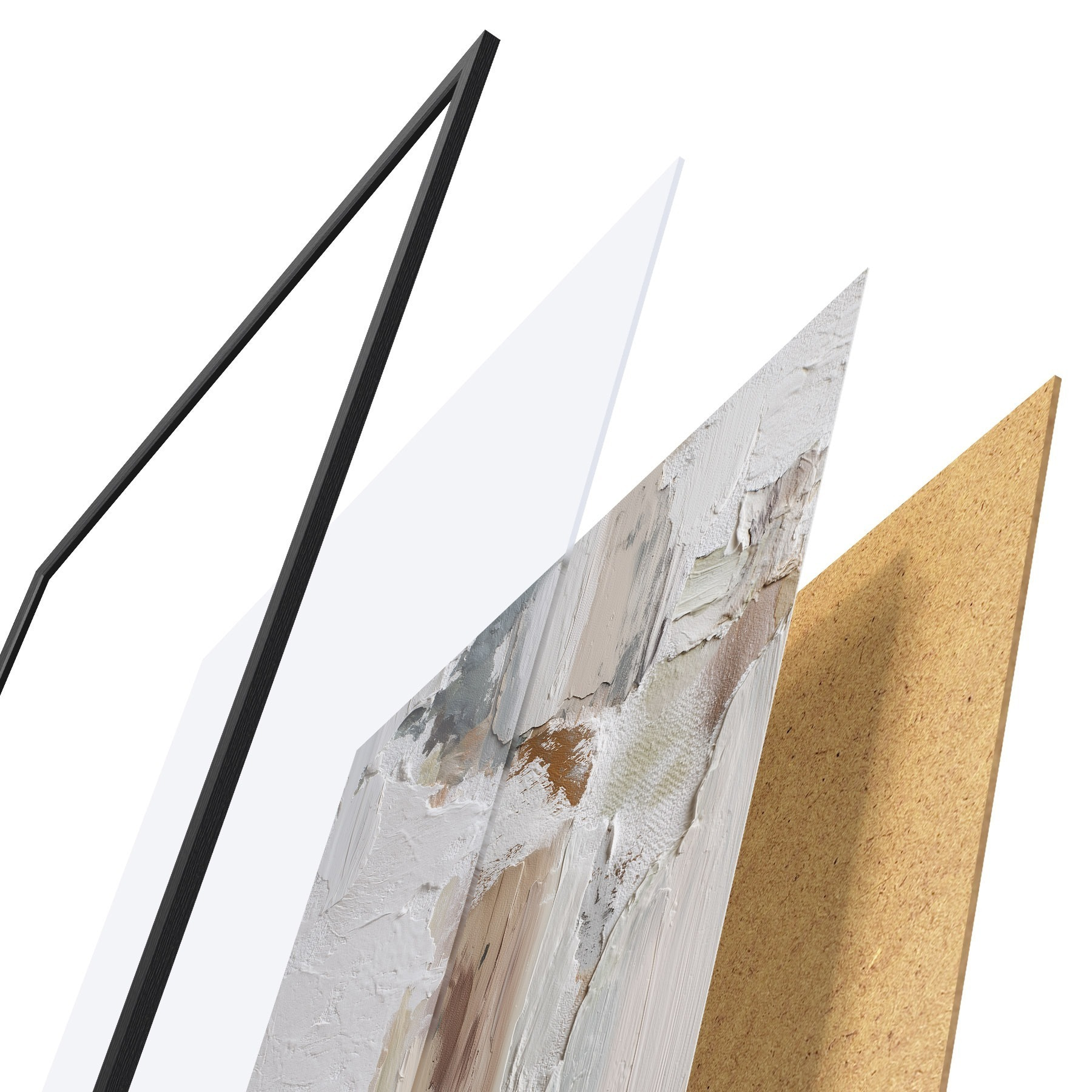L’affiche encadrée est composée d’un cadre, d’un plexiglas, d’une image imprimée et d’un support en aggloméré. Elle est prête à être accrochée au mur grâce aux fixations situées à l’arrière.