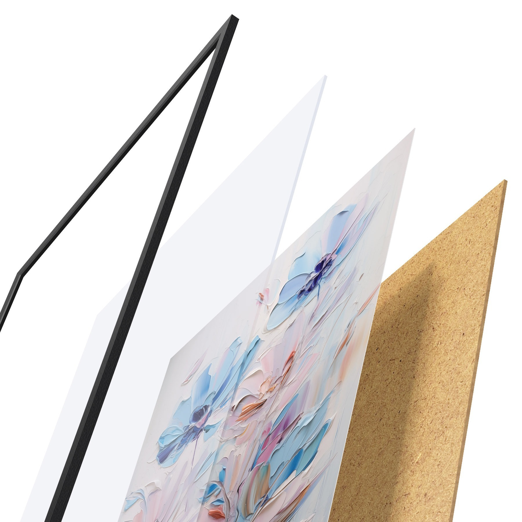 L’affiche encadrée est composée d’un cadre, d’un plexiglas, d’une image imprimée et d’un support en aggloméré. Elle est prête à être accrochée au mur grâce aux fixations situées à l’arrière.