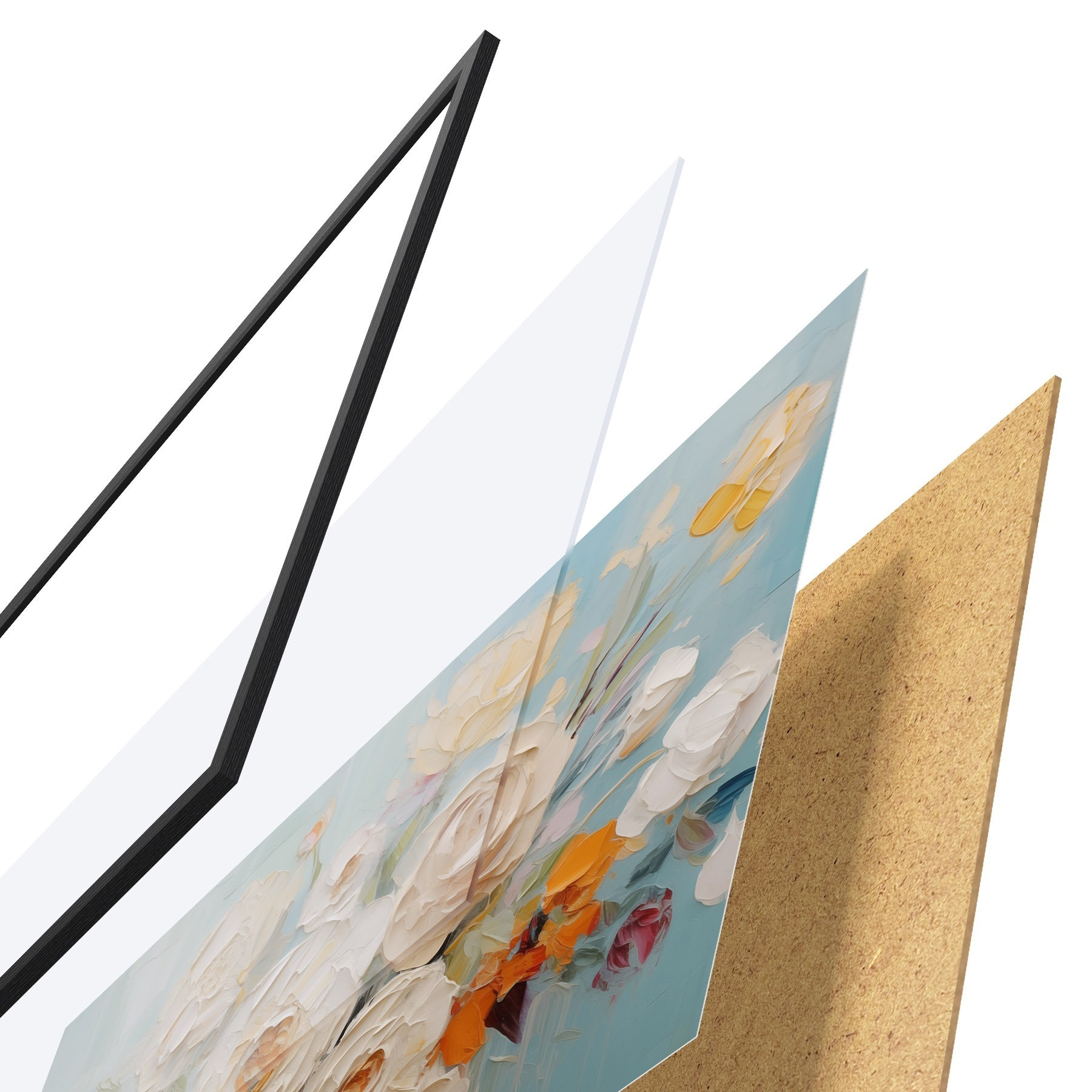 L’affiche encadrée est composée d’un cadre, d’un plexiglas, d’une image imprimée et d’un support en aggloméré. Elle est prête à être accrochée au mur grâce aux fixations situées à l’arrière.