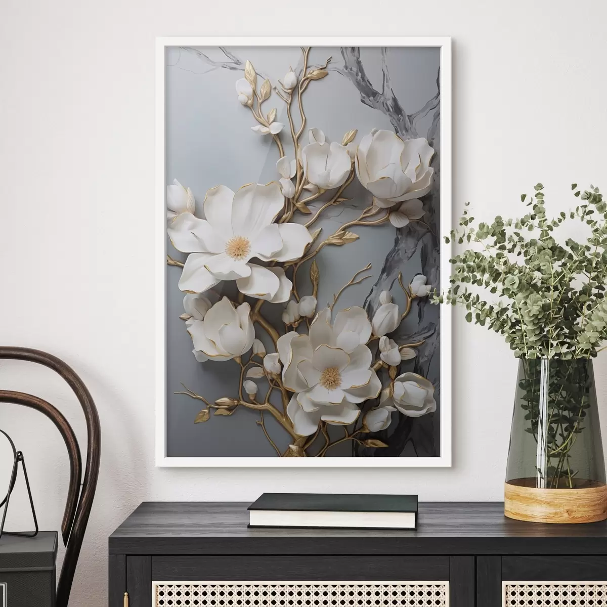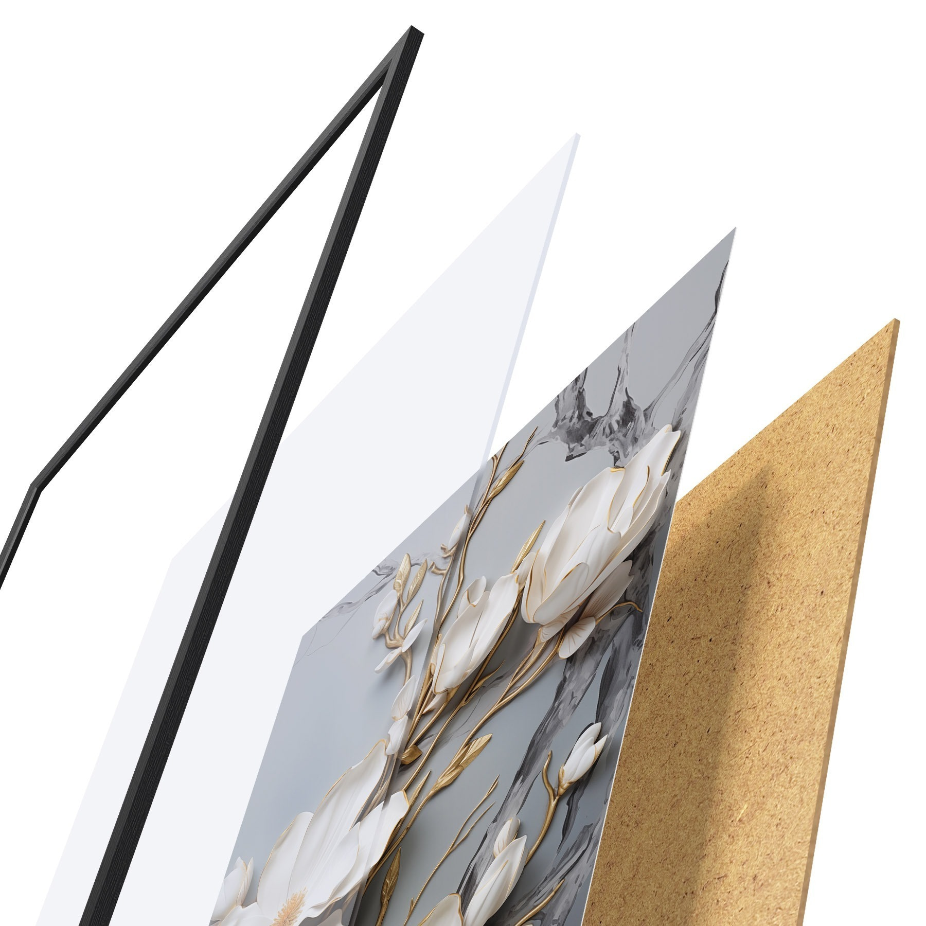 L’affiche encadrée est composée d’un cadre, d’un plexiglas, d’une image imprimée et d’un support en aggloméré. Elle est prête à être accrochée au mur grâce aux fixations situées à l’arrière.