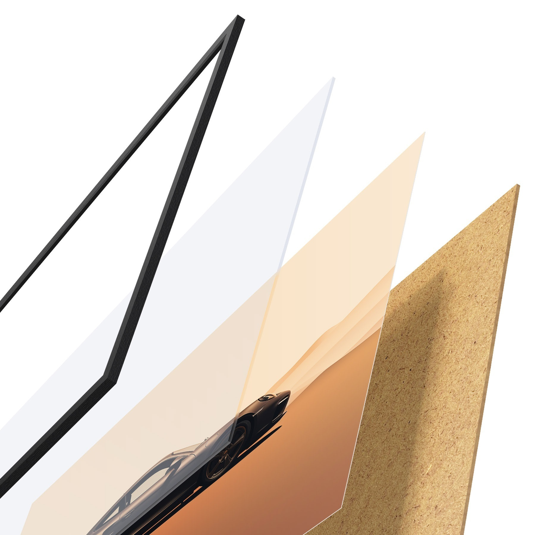 L’affiche encadrée est composée d’un cadre, d’un plexiglas, d’une image imprimée et d’un support en aggloméré. Elle est prête à être accrochée au mur grâce aux fixations situées à l’arrière.