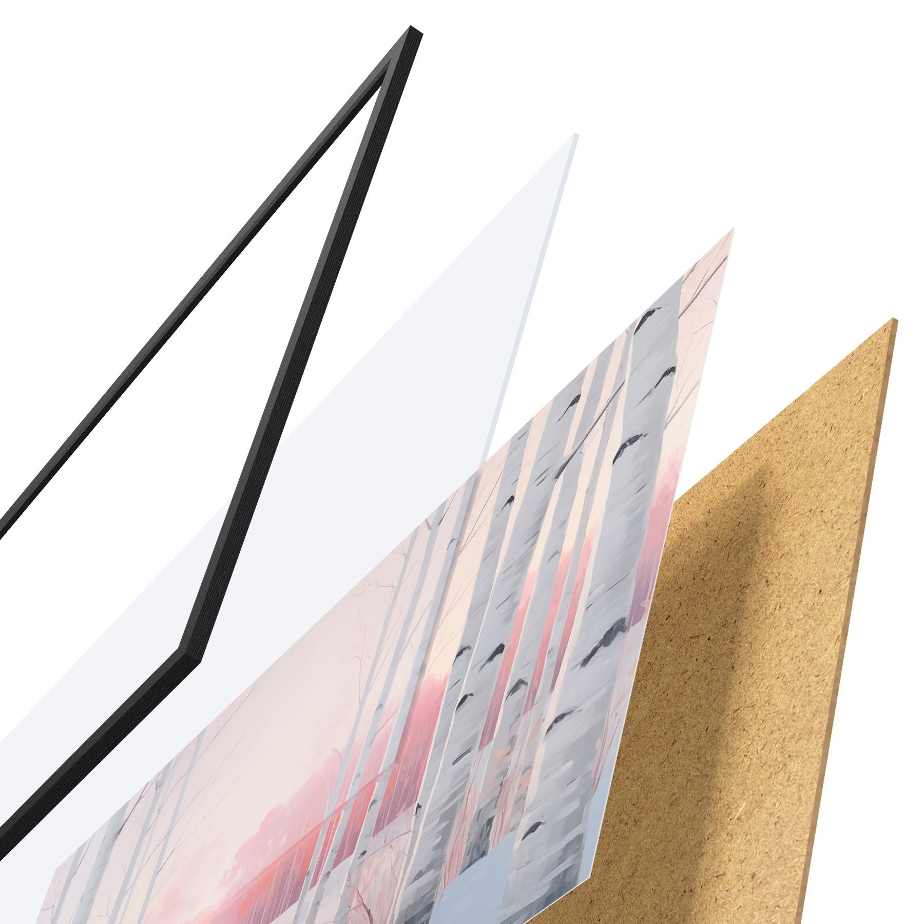 L’affiche encadrée est composée d’un cadre, d’un plexiglas, d’une image imprimée et d’un support en aggloméré. Elle est prête à être accrochée au mur grâce aux fixations situées à l’arrière.