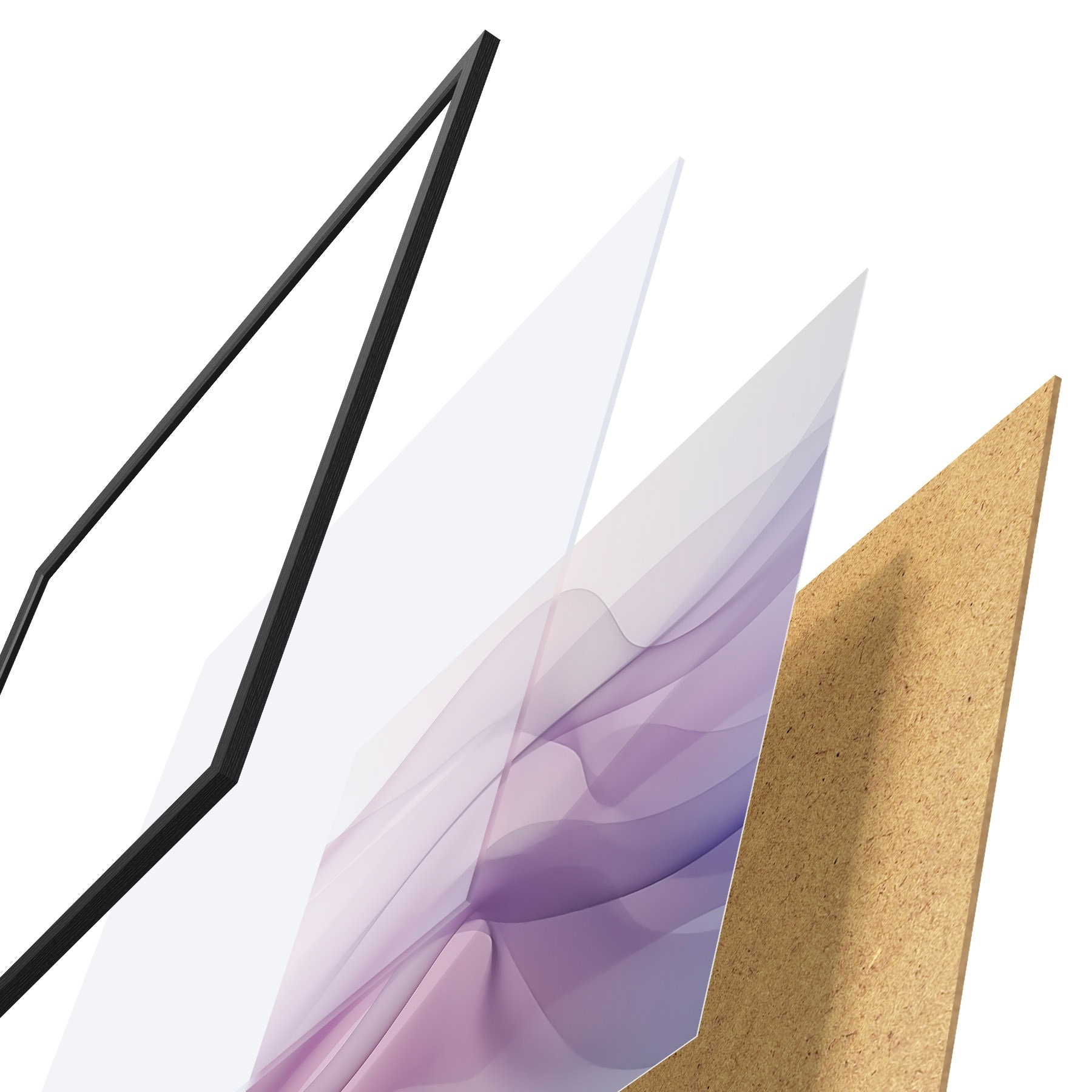L’affiche encadrée est composée d’un cadre, d’un plexiglas, d’une image imprimée et d’un support en aggloméré. Elle est prête à être accrochée au mur grâce aux fixations situées à l’arrière.
