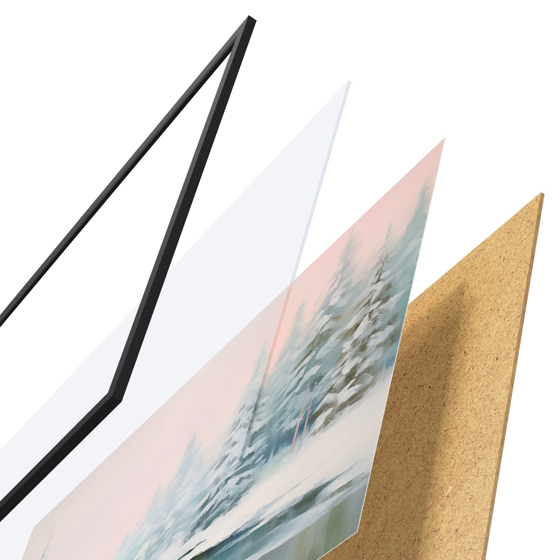 L’affiche encadrée est composée d’un cadre, d’un plexiglas, d’une image imprimée et d’un support en aggloméré. Elle est prête à être accrochée au mur grâce aux fixations situées à l’arrière.