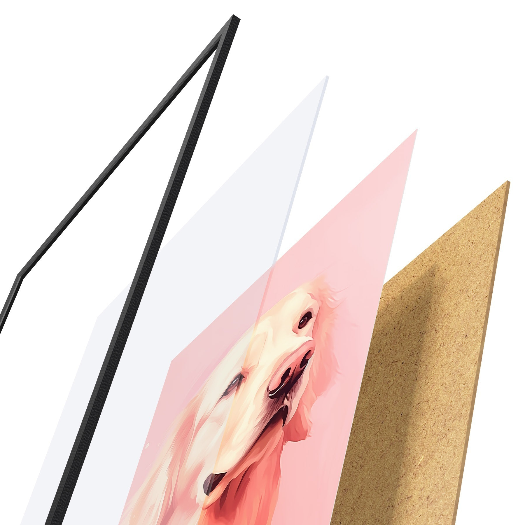 L’affiche encadrée est composée d’un cadre, d’un plexiglas, d’une image imprimée et d’un support en aggloméré. Elle est prête à être accrochée au mur grâce aux fixations situées à l’arrière.
