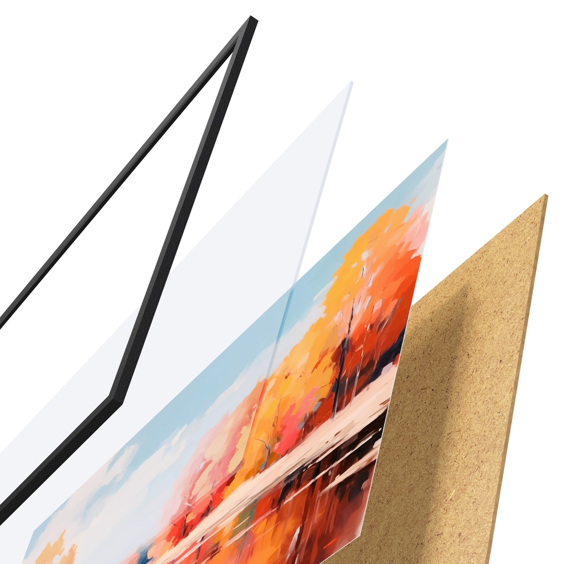 L’affiche encadrée est composée d’un cadre, d’un plexiglas, d’une image imprimée et d’un support en aggloméré. Elle est prête à être accrochée au mur grâce aux fixations situées à l’arrière.