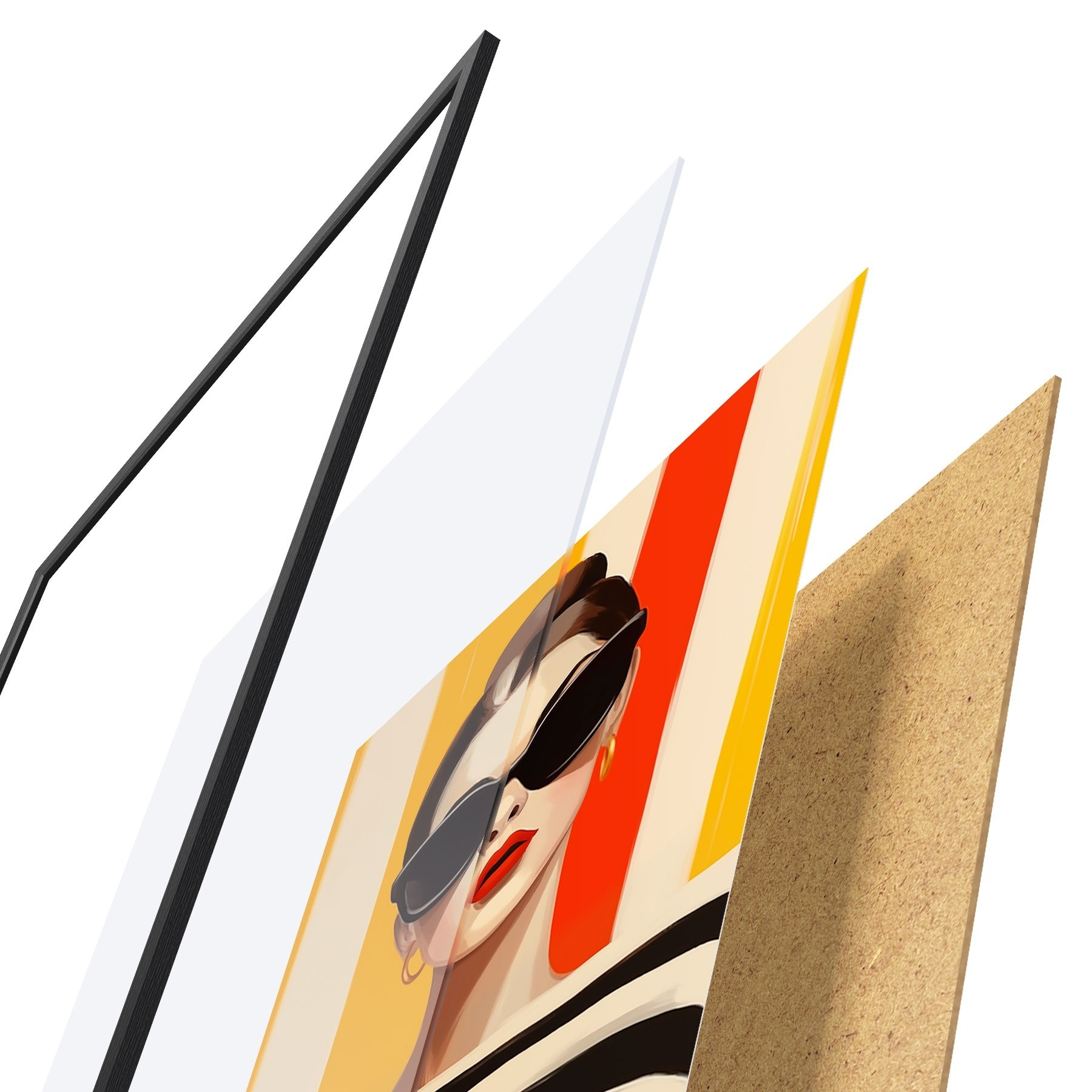L’affiche encadrée est composée d’un cadre, d’un plexiglas, d’une image imprimée et d’un support en aggloméré. Elle est prête à être accrochée au mur grâce aux fixations situées à l’arrière.