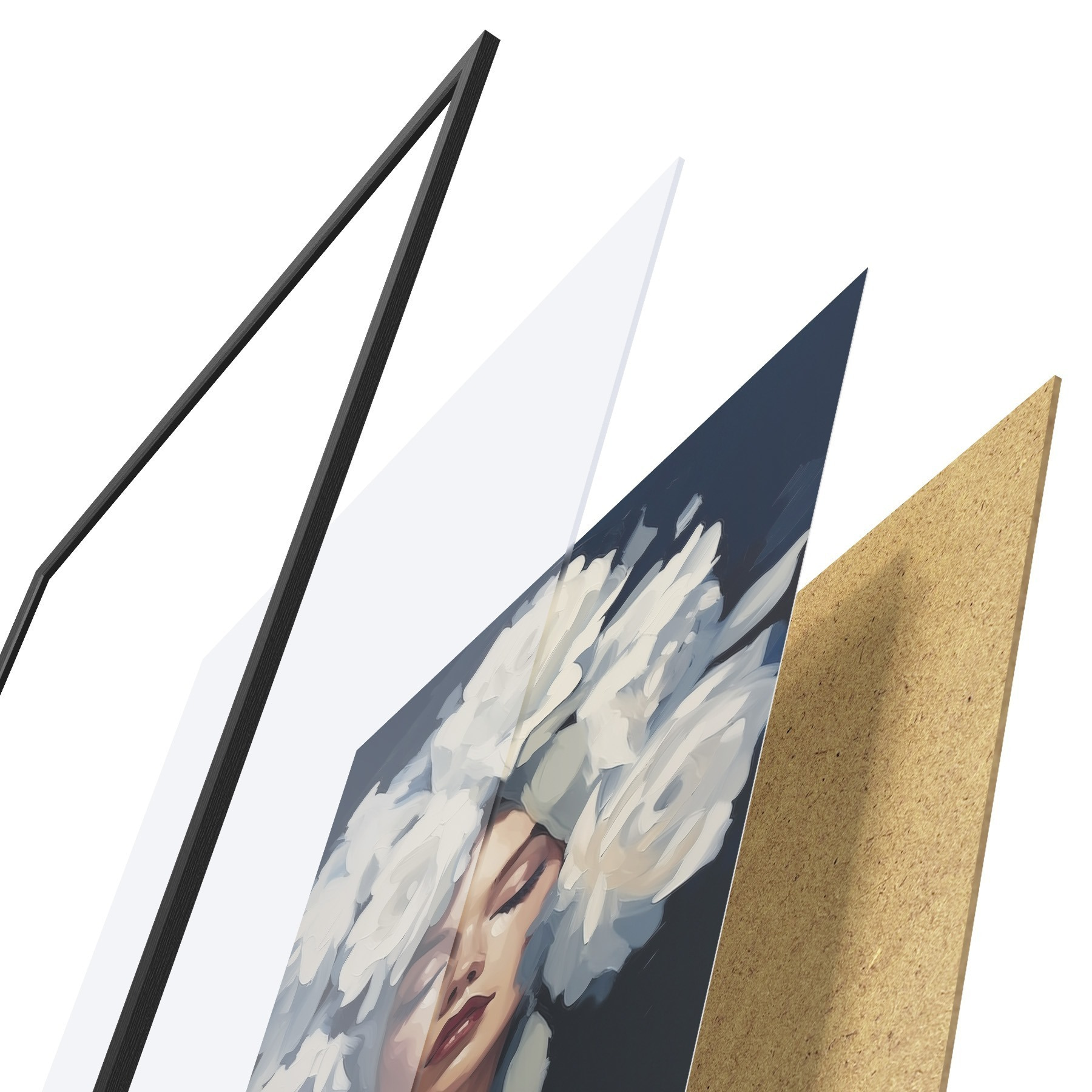 L’affiche encadrée est composée d’un cadre, d’un plexiglas, d’une image imprimée et d’un support en aggloméré. Elle est prête à être accrochée au mur grâce aux fixations situées à l’arrière.