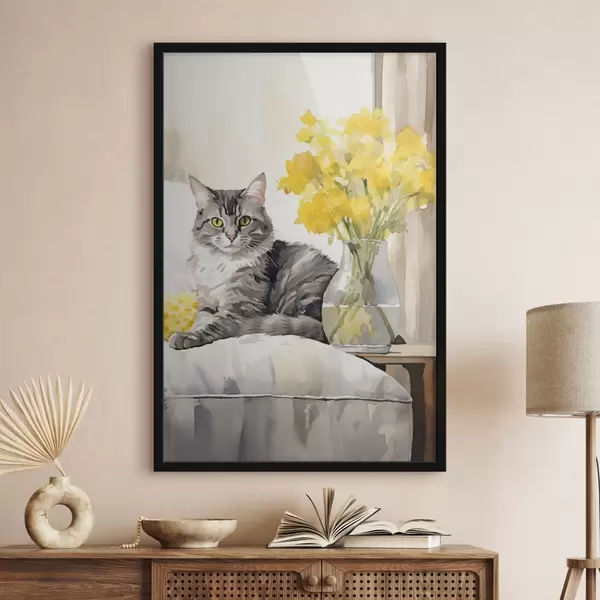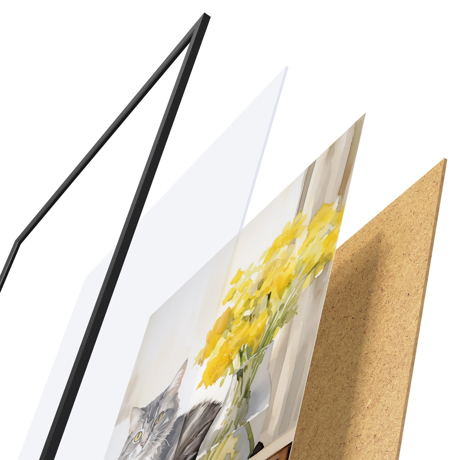 L’affiche encadrée est composée d’un cadre, d’un plexiglas, d’une image imprimée et d’un support en aggloméré. Elle est prête à être accrochée au mur grâce aux fixations situées à l’arrière.