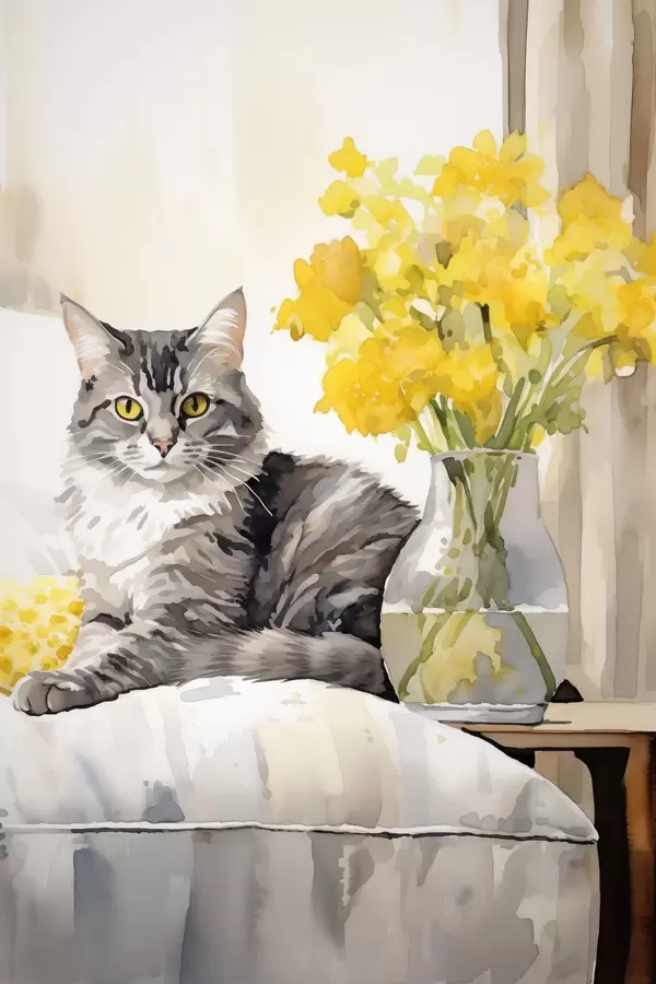 Poster Chat et fleurs Nr f46426
