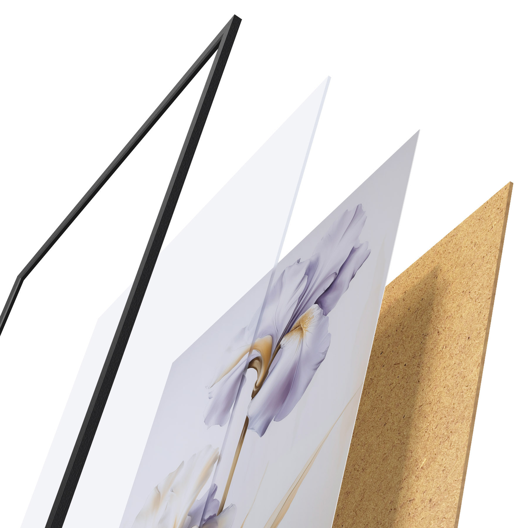 L’affiche encadrée est composée d’un cadre, d’un plexiglas, d’une image imprimée et d’un support en aggloméré. Elle est prête à être accrochée au mur grâce aux fixations situées à l’arrière.