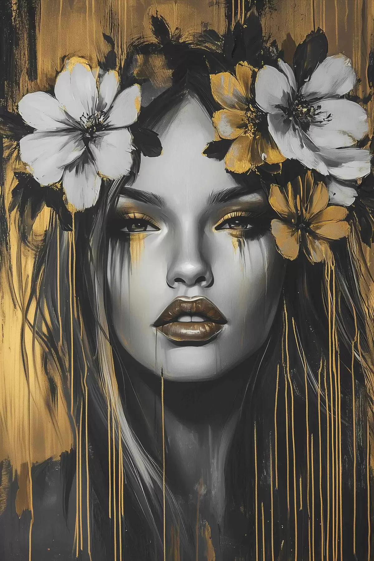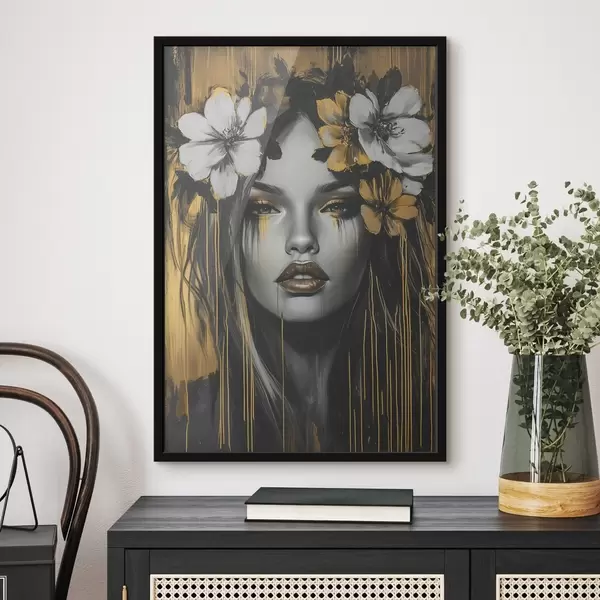 Poster Portrait abstrait d'une femme avec des fleurs Nr f46454