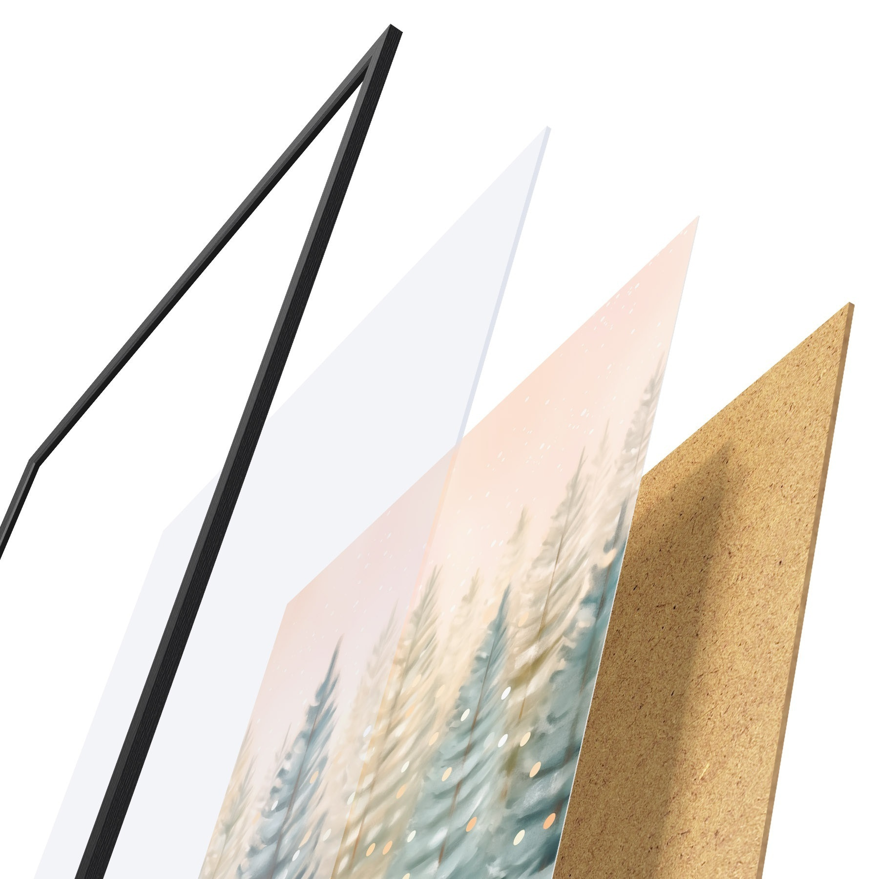 L’affiche encadrée est composée d’un cadre, d’un plexiglas, d’une image imprimée et d’un support en aggloméré. Elle est prête à être accrochée au mur grâce aux fixations situées à l’arrière.