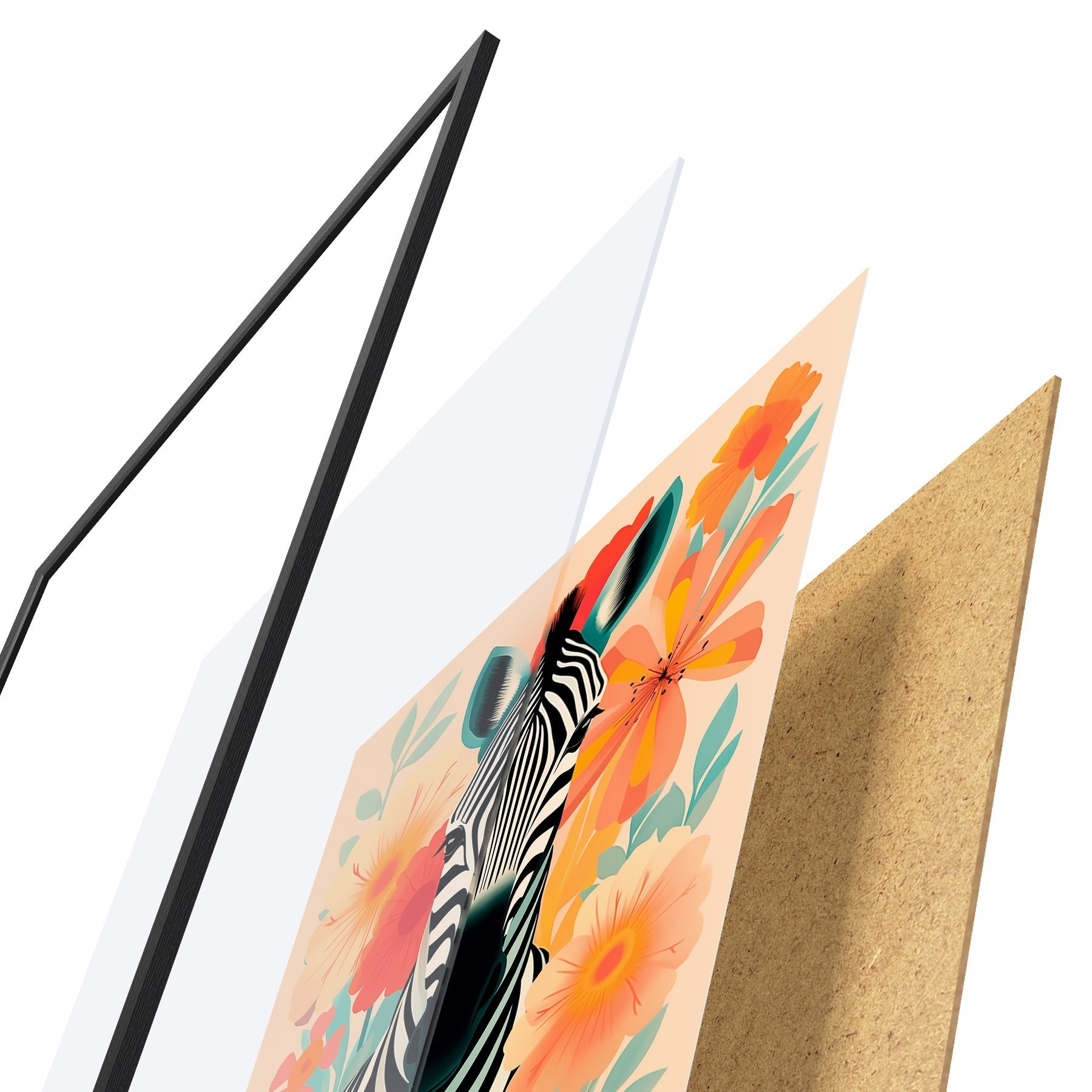L’affiche encadrée est composée d’un cadre, d’un plexiglas, d’une image imprimée et d’un support en aggloméré. Elle est prête à être accrochée au mur grâce aux fixations situées à l’arrière.