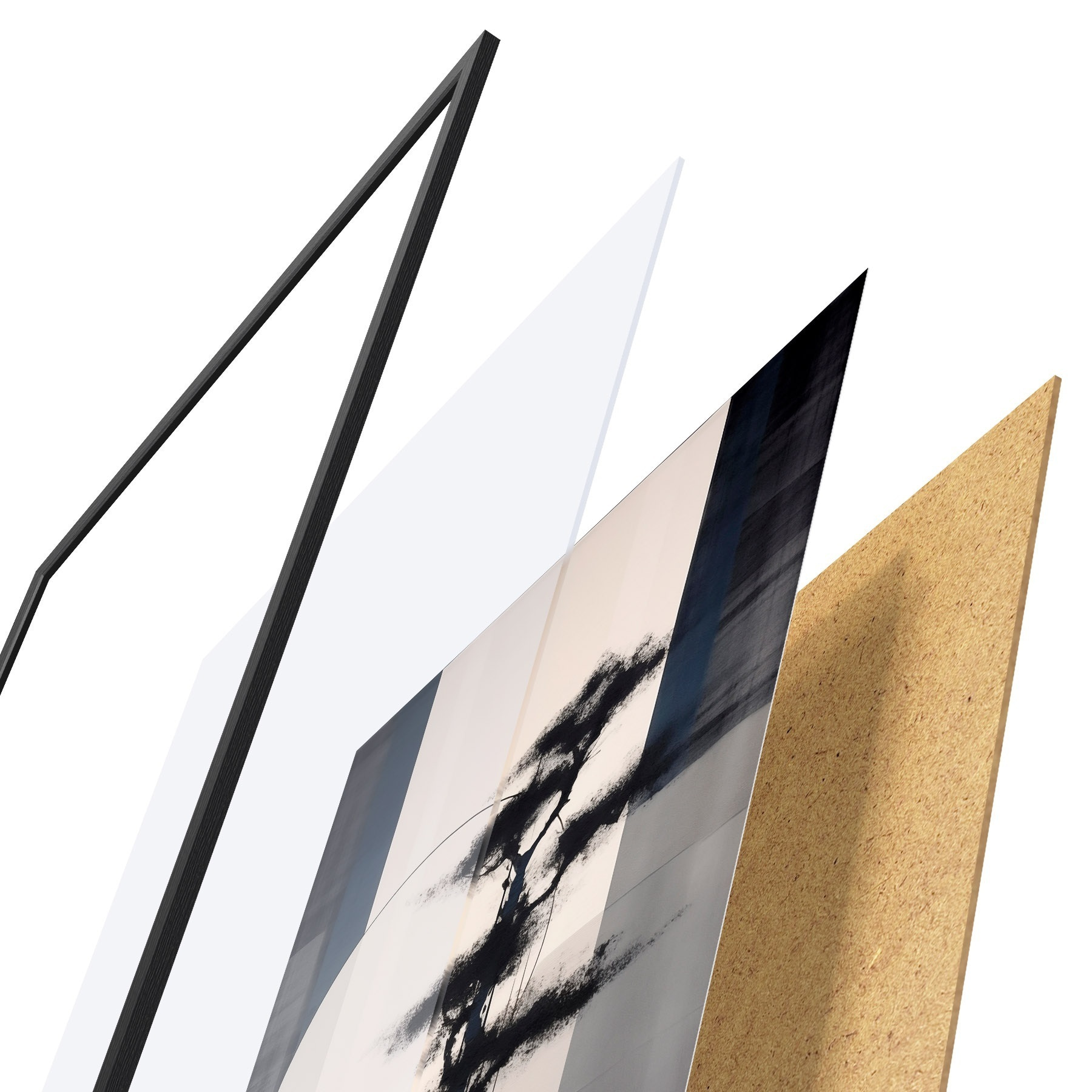 L’affiche encadrée est composée d’un cadre, d’un plexiglas, d’une image imprimée et d’un support en aggloméré. Elle est prête à être accrochée au mur grâce aux fixations situées à l’arrière.