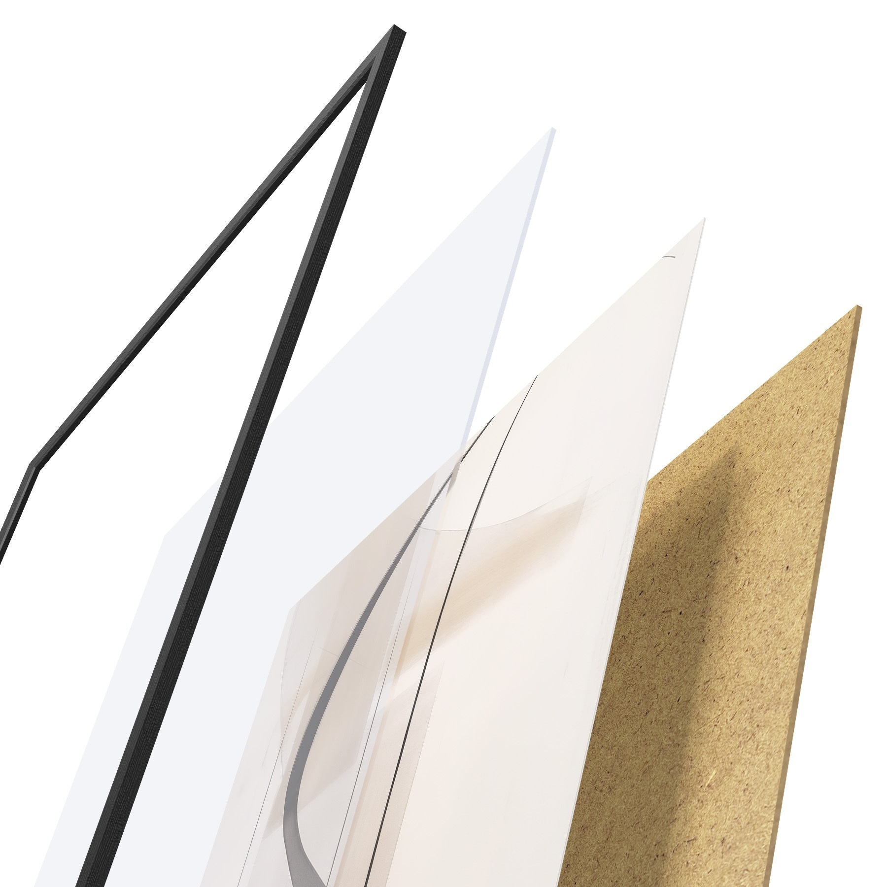 L’affiche encadrée est composée d’un cadre, d’un plexiglas, d’une image imprimée et d’un support en aggloméré. Elle est prête à être accrochée au mur grâce aux fixations situées à l’arrière.