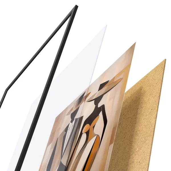 L’affiche encadrée est composée d’un cadre, d’un plexiglas, d’une image imprimée et d’un support en aggloméré. Elle est prête à être accrochée au mur grâce aux fixations situées à l’arrière.