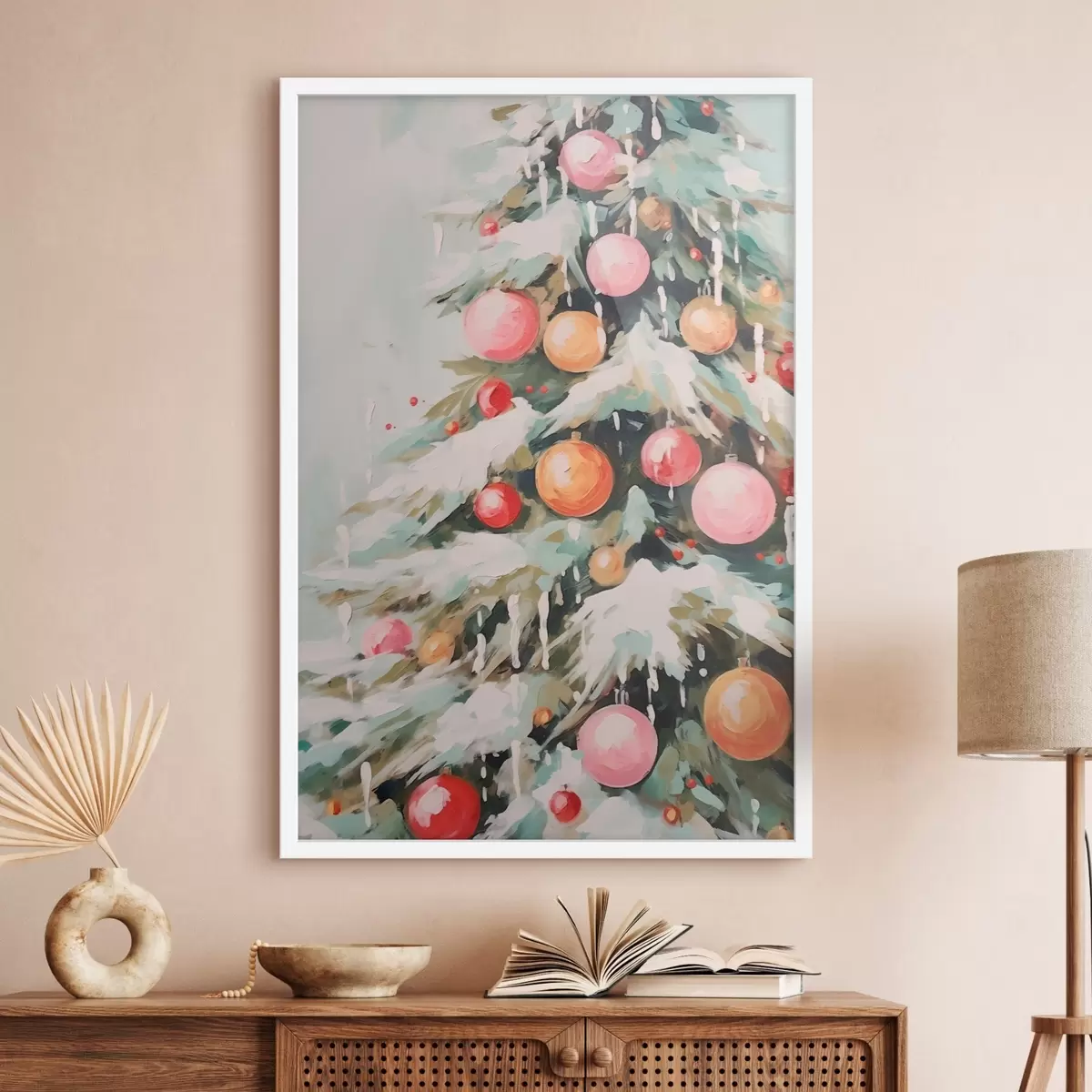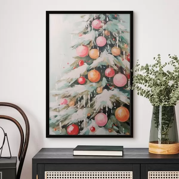 Poster Sapin de Noël avec neige et boules roses Nr f46480