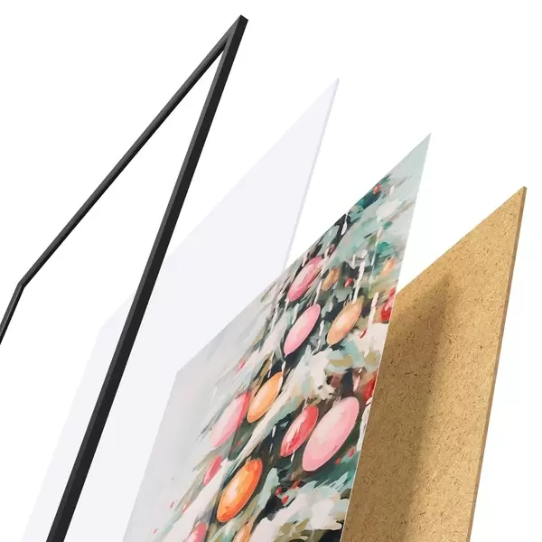 L’affiche encadrée est composée d’un cadre, d’un plexiglas, d’une image imprimée et d’un support en aggloméré. Elle est prête à être accrochée au mur grâce aux fixations situées à l’arrière.