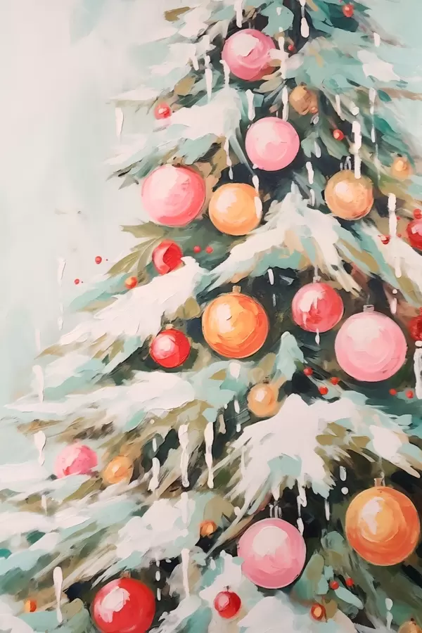 Poster Sapin de Noël avec neige et boules roses Nr f46480