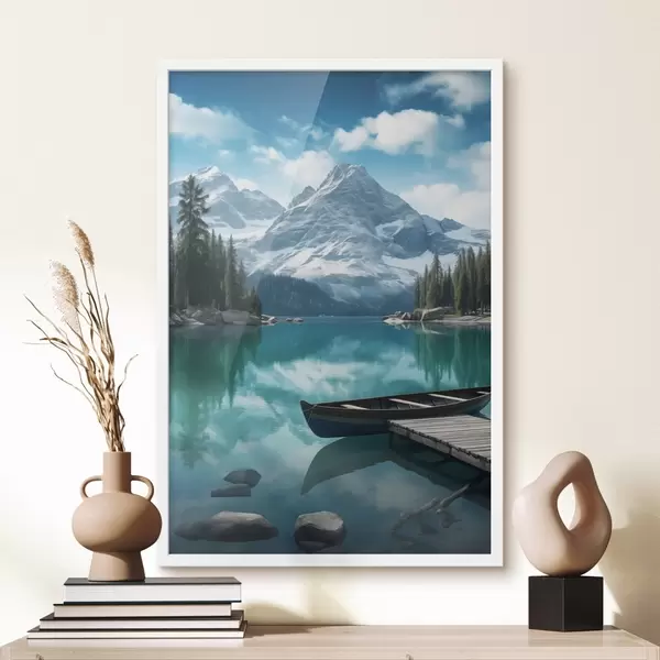 Poster Lac alpin avec canoë et sommets enneigés Nr f46481
