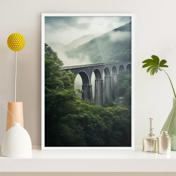 Poster Viaduc en pierre au-dessus d'une vallée boisée brumeuse Nr f46483