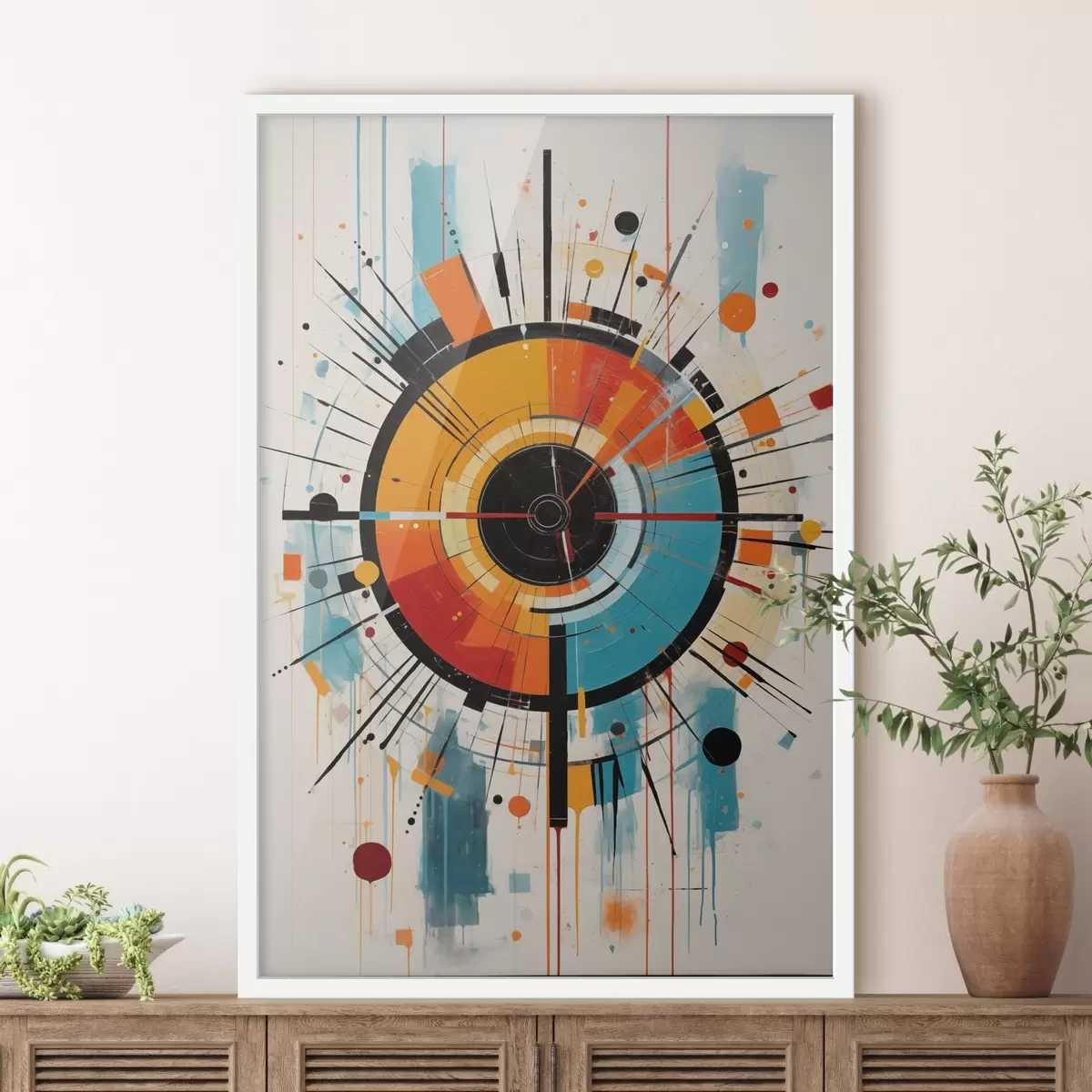 Poster Éclatement radial en bleu sarcelle, orange et noir Nr f46485