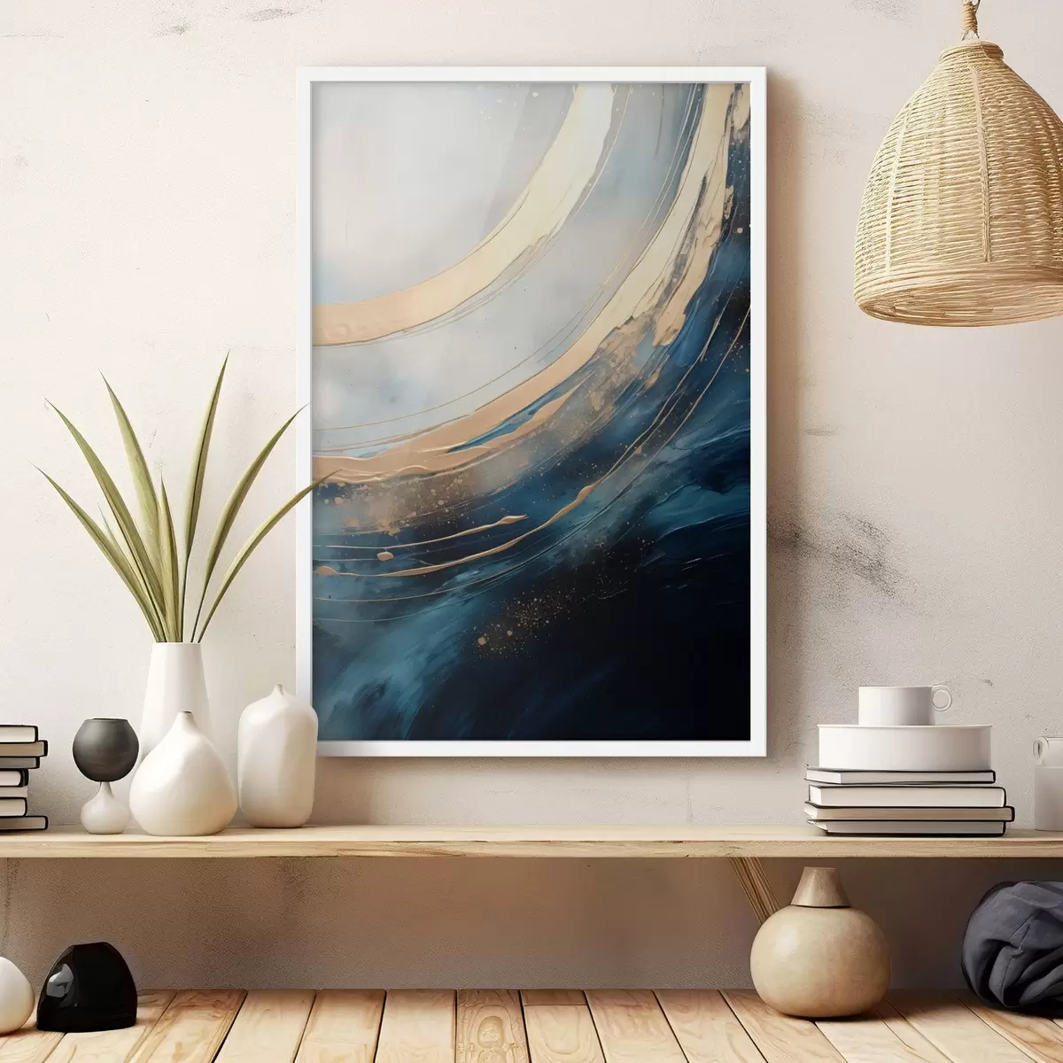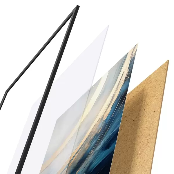 L’affiche encadrée est composée d’un cadre, d’un plexiglas, d’une image imprimée et d’un support en aggloméré. Elle est prête à être accrochée au mur grâce aux fixations situées à l’arrière.