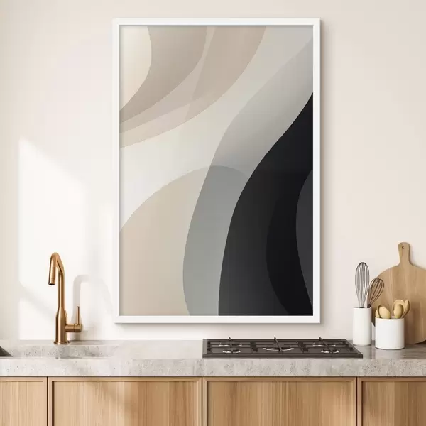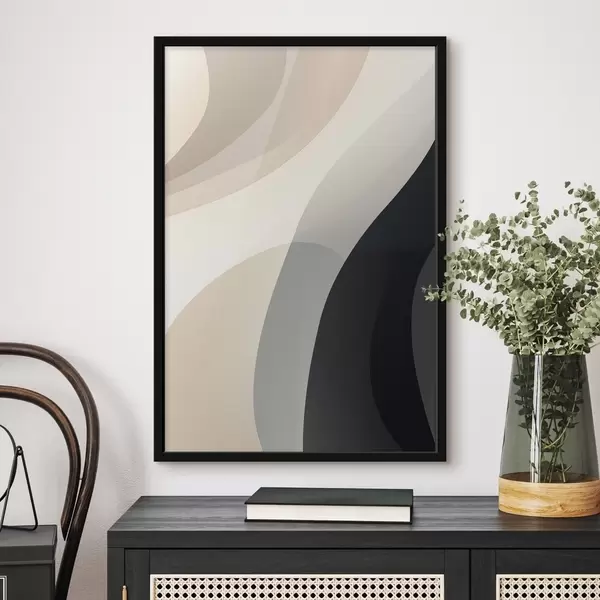 Poster Formes organiques ondulées dans des tons beige chaud et anthracite Nr f46494