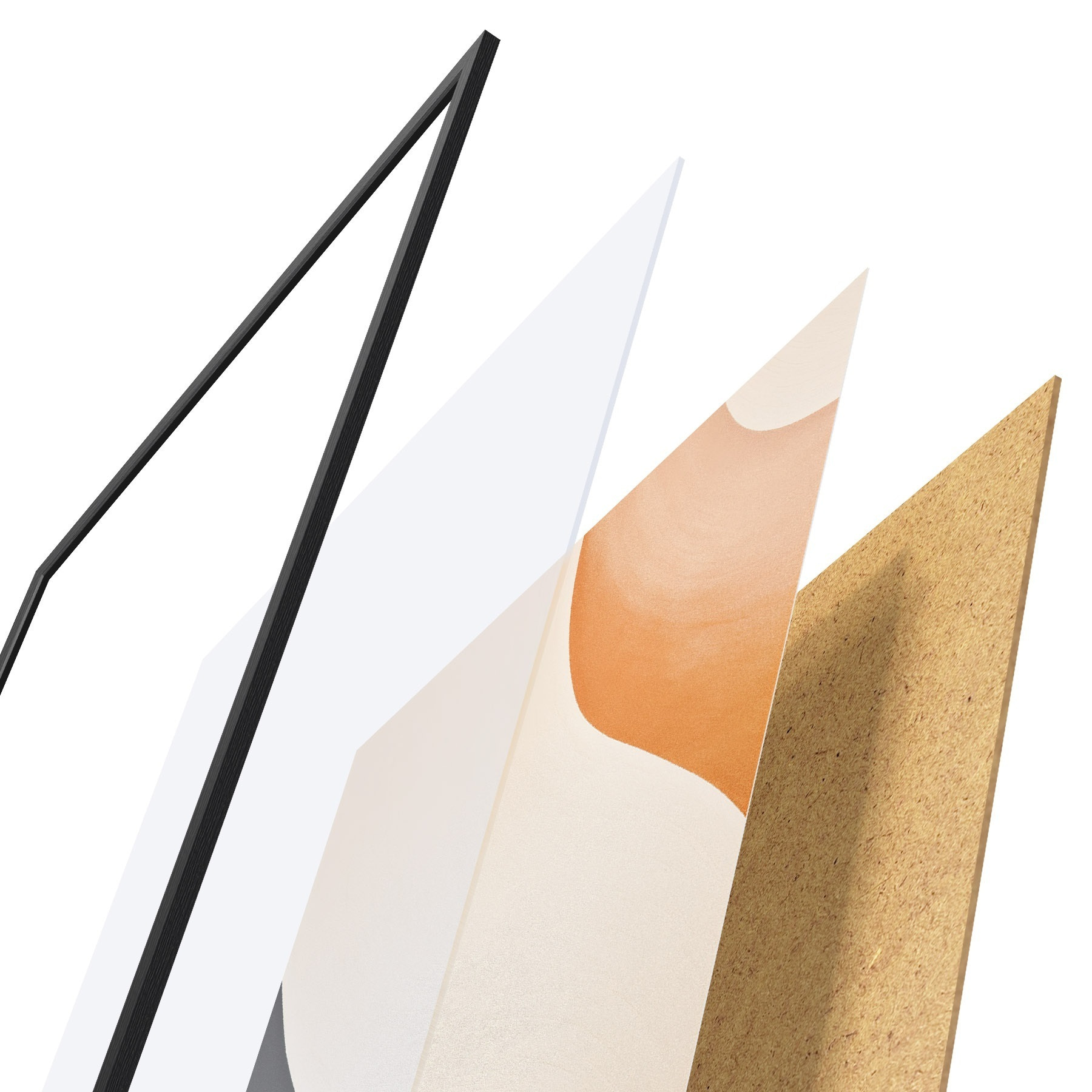 L’affiche encadrée est composée d’un cadre, d’un plexiglas, d’une image imprimée et d’un support en aggloméré. Elle est prête à être accrochée au mur grâce aux fixations situées à l’arrière.