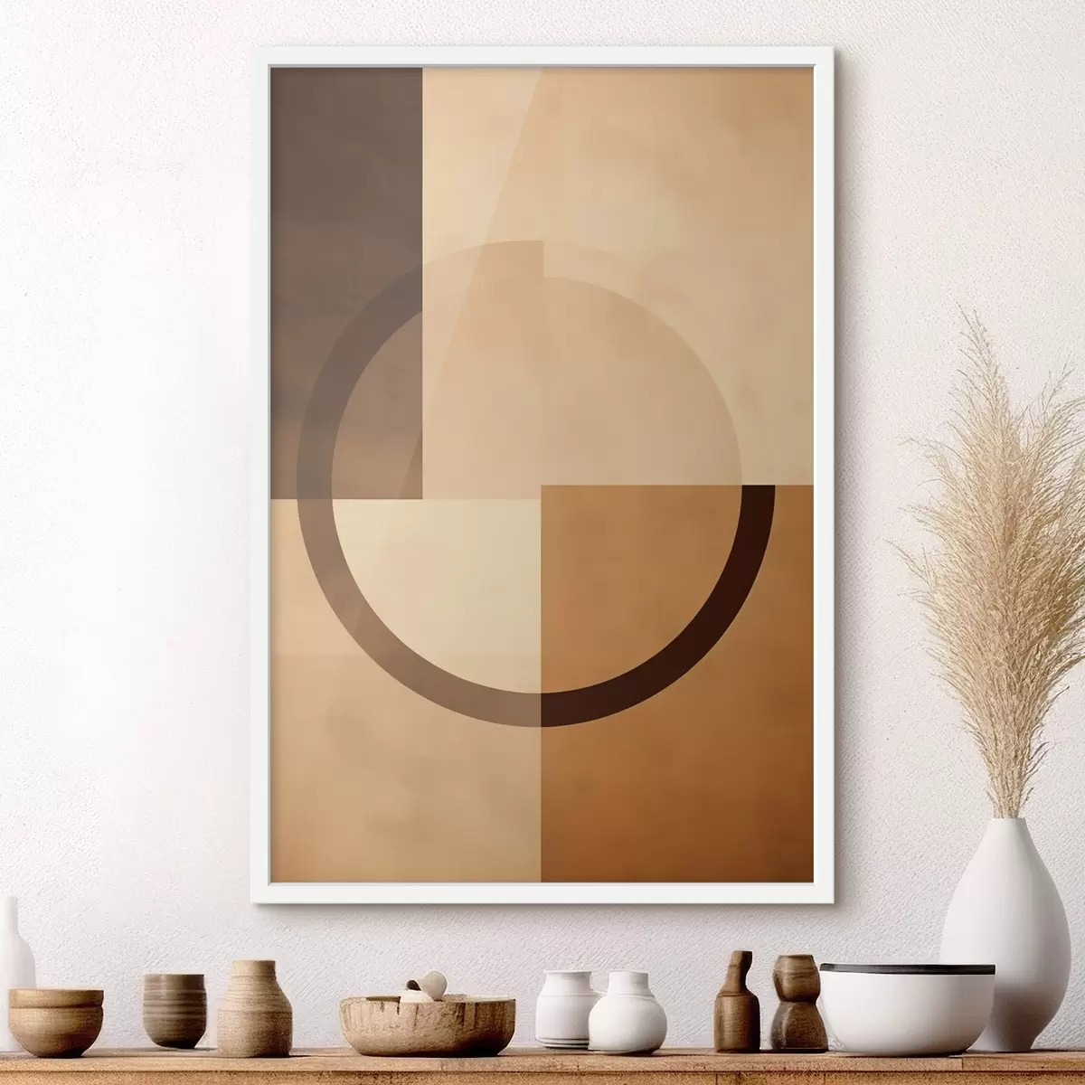 Poster Carrés discrets avec anneau translucide, palette de couleurs chaudes inspirées de la terre Nr f46498