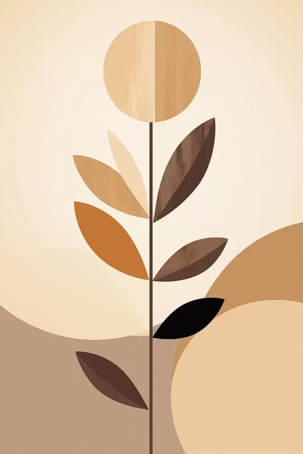 Poster Fleur stylisée avec des feuilles géométriques dans des tons chauds f46500