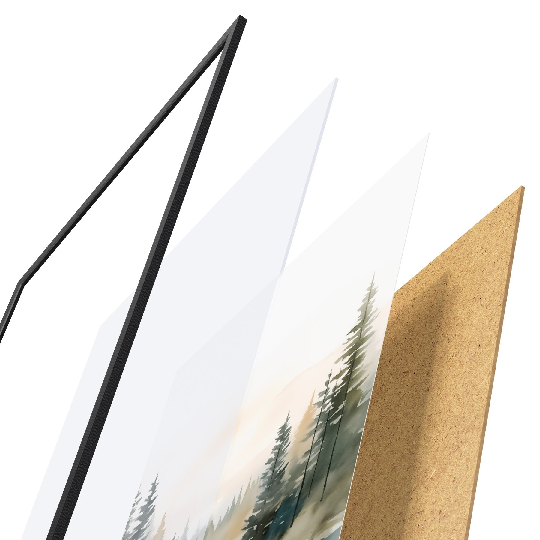 L’affiche encadrée est composée d’un cadre, d’un plexiglas, d’une image imprimée et d’un support en aggloméré. Elle est prête à être accrochée au mur grâce aux fixations situées à l’arrière.