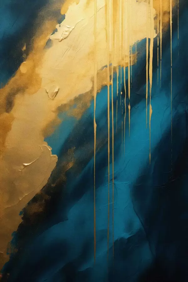 Poster Abstrait bleu sarcelle et bleu foncé avec des reflets chauds fluides Nr f46509