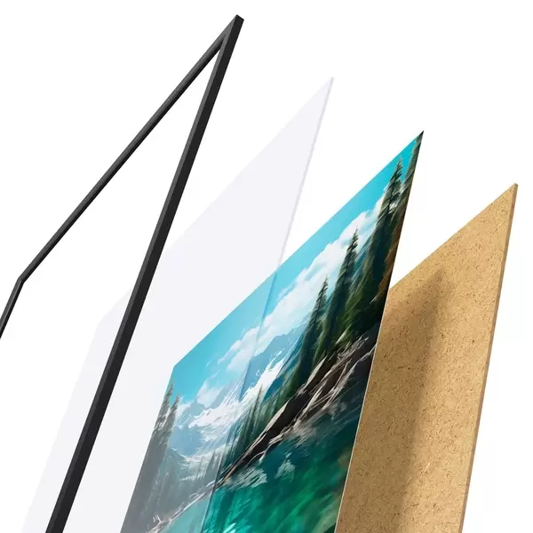 L’affiche encadrée est composée d’un cadre, d’un plexiglas, d’une image imprimée et d’un support en aggloméré. Elle est prête à être accrochée au mur grâce aux fixations situées à l’arrière.