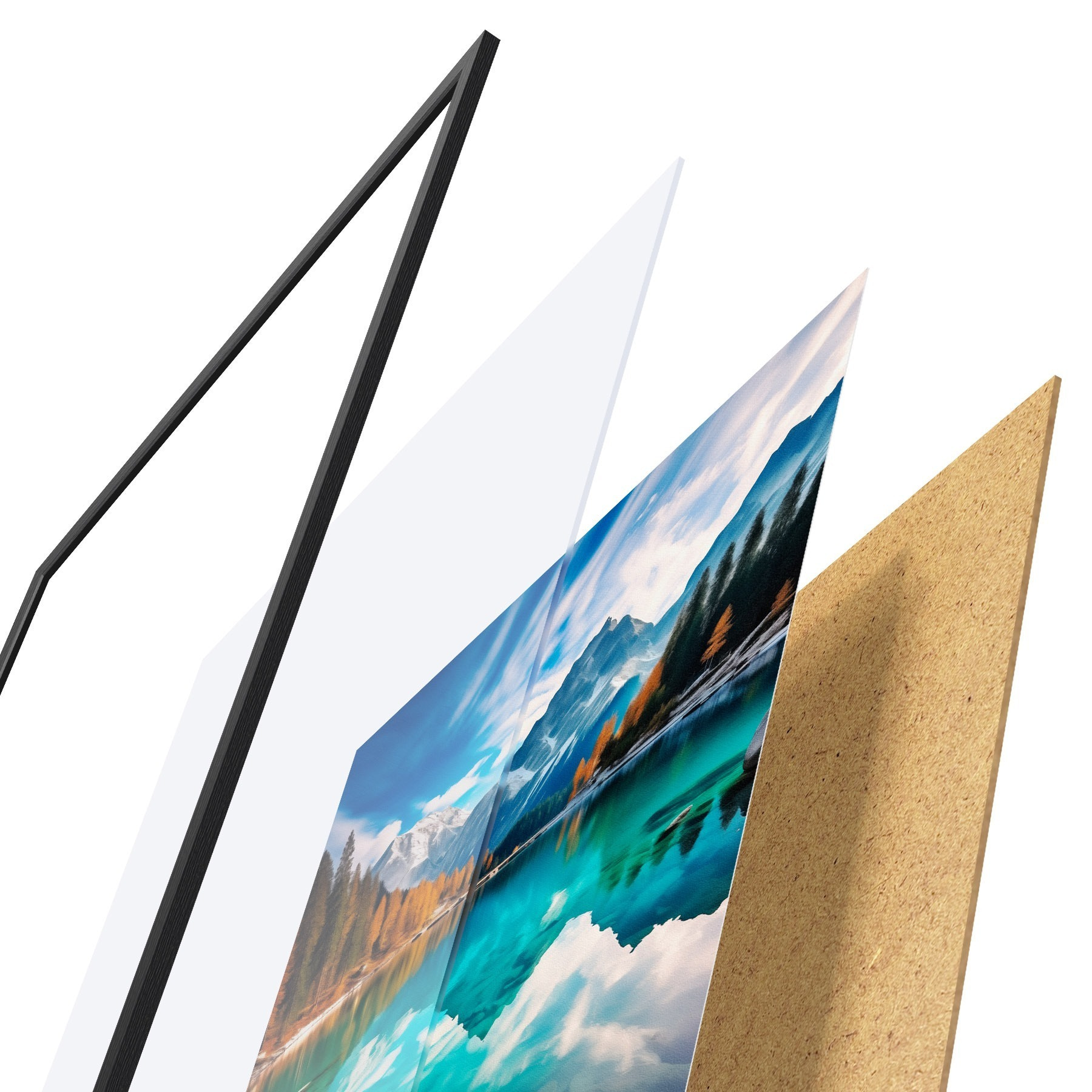 L’affiche encadrée est composée d’un cadre, d’un plexiglas, d’une image imprimée et d’un support en aggloméré. Elle est prête à être accrochée au mur grâce aux fixations situées à l’arrière.