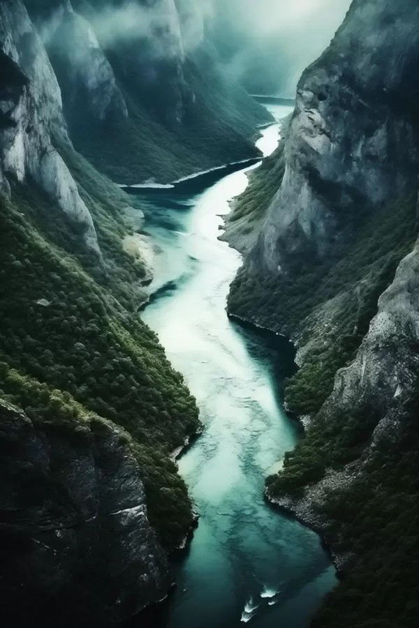 Poster Gorge étroite avec un courant turquoise vu d'en haut Nr f46522