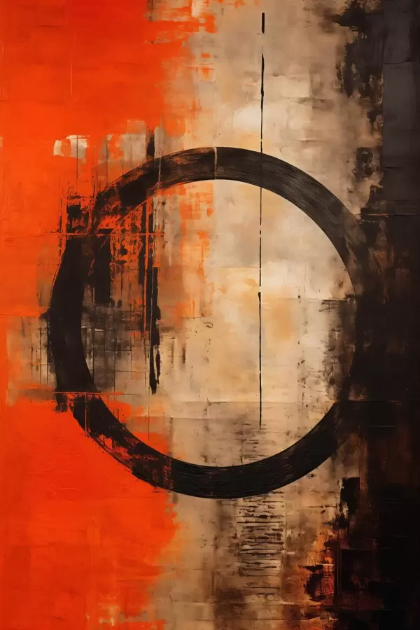 Poster Résumé avec un grand cercle noir et des textures chaleureuses Nr f46528
