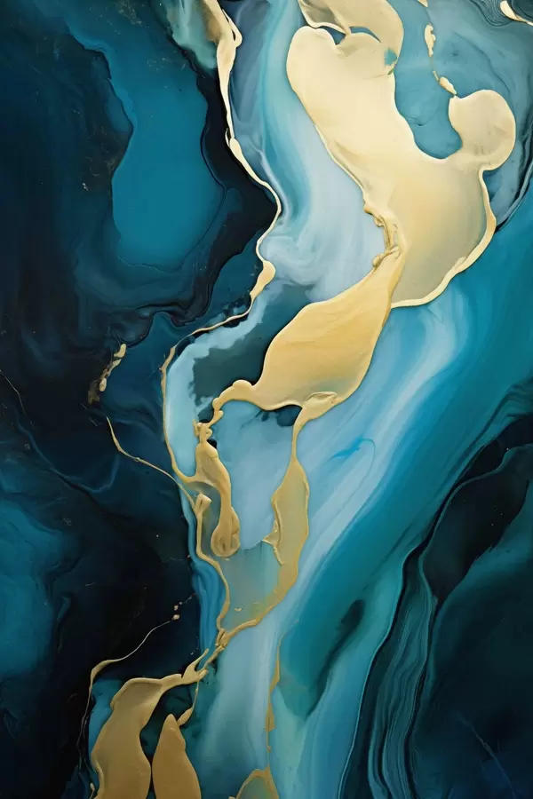 Poster Abstrait bleu sarcelle avec un trait ocre Nr f46530