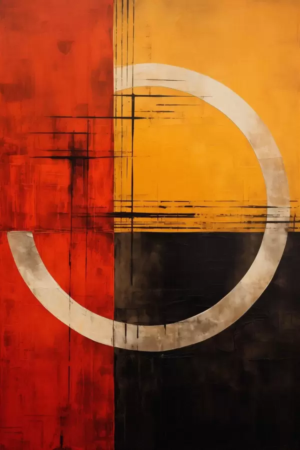 Poster Cercle abstrait sur fond rouge et noir avec des lignes Nr f46535
