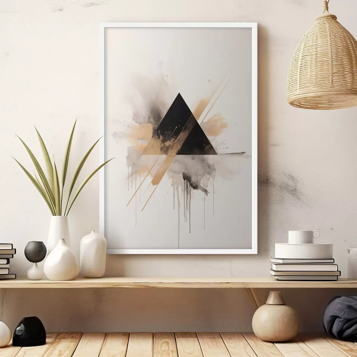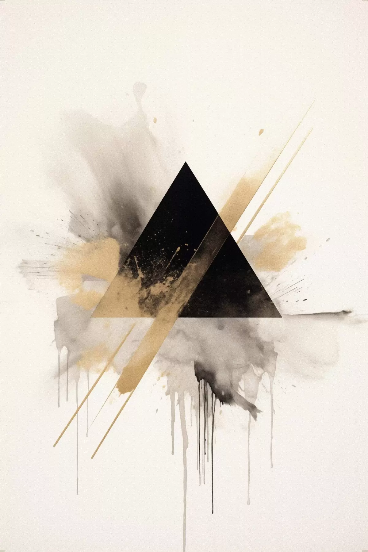 Poster Géométrie : triangle noir avec des éclaboussures et des lignes claires f46540