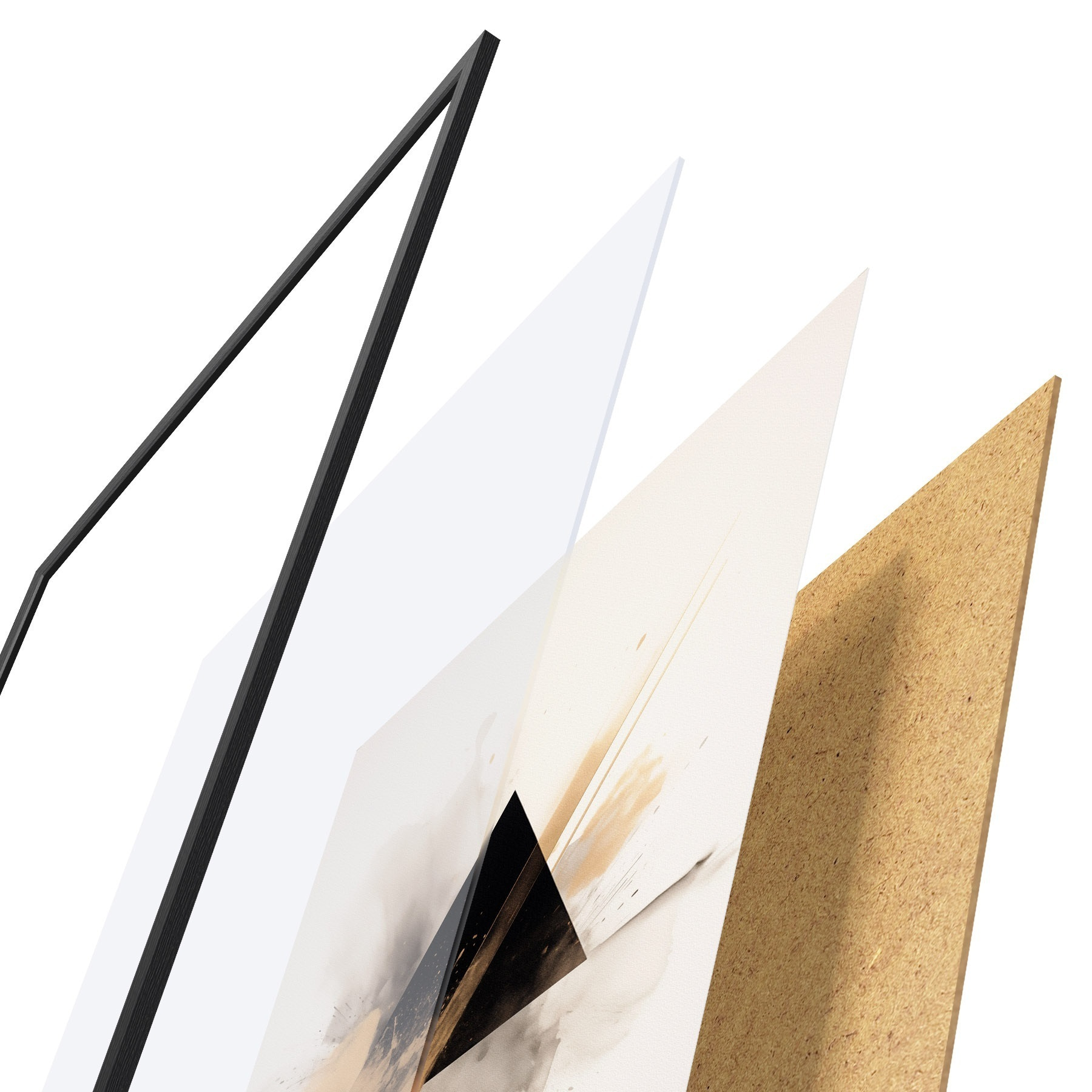 L’affiche encadrée est composée d’un cadre, d’un plexiglas, d’une image imprimée et d’un support en aggloméré. Elle est prête à être accrochée au mur grâce aux fixations situées à l’arrière.