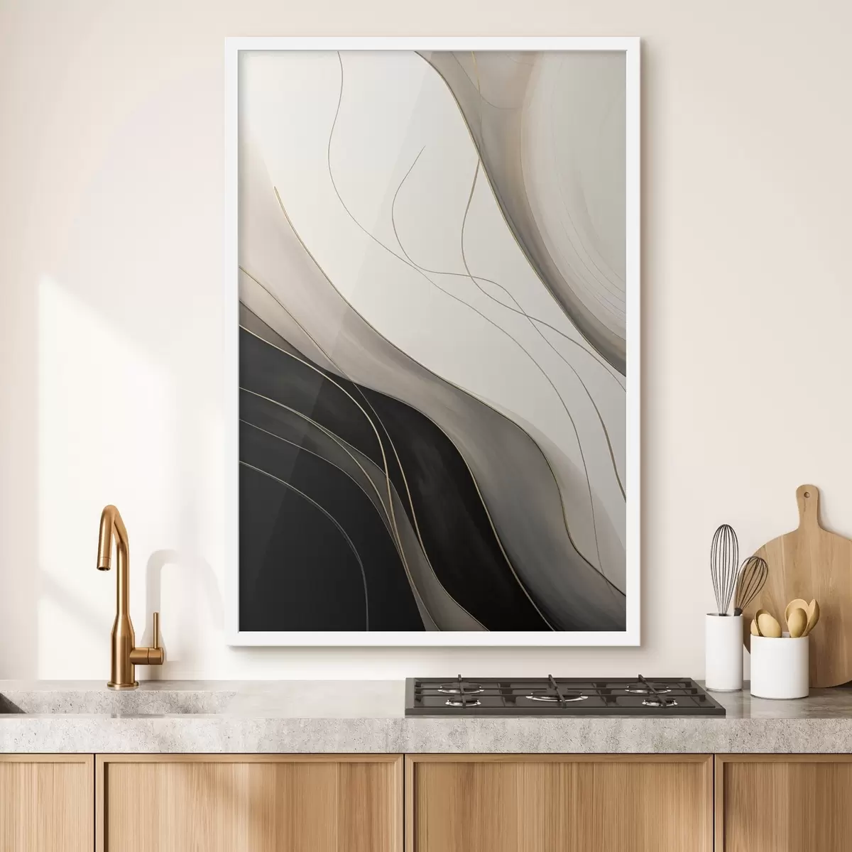 Poster Vagues noires et beiges avec de fines lignes ocres Nr f46541