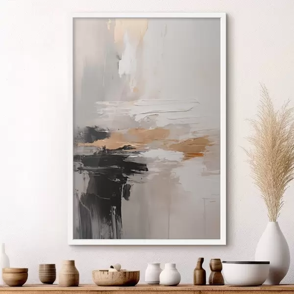 Poster Couches contrastées de noir et d'ocre sur fond nude Nr f46544
