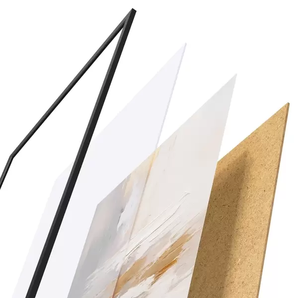 L’affiche encadrée est composée d’un cadre, d’un plexiglas, d’une image imprimée et d’un support en aggloméré. Elle est prête à être accrochée au mur grâce aux fixations situées à l’arrière.