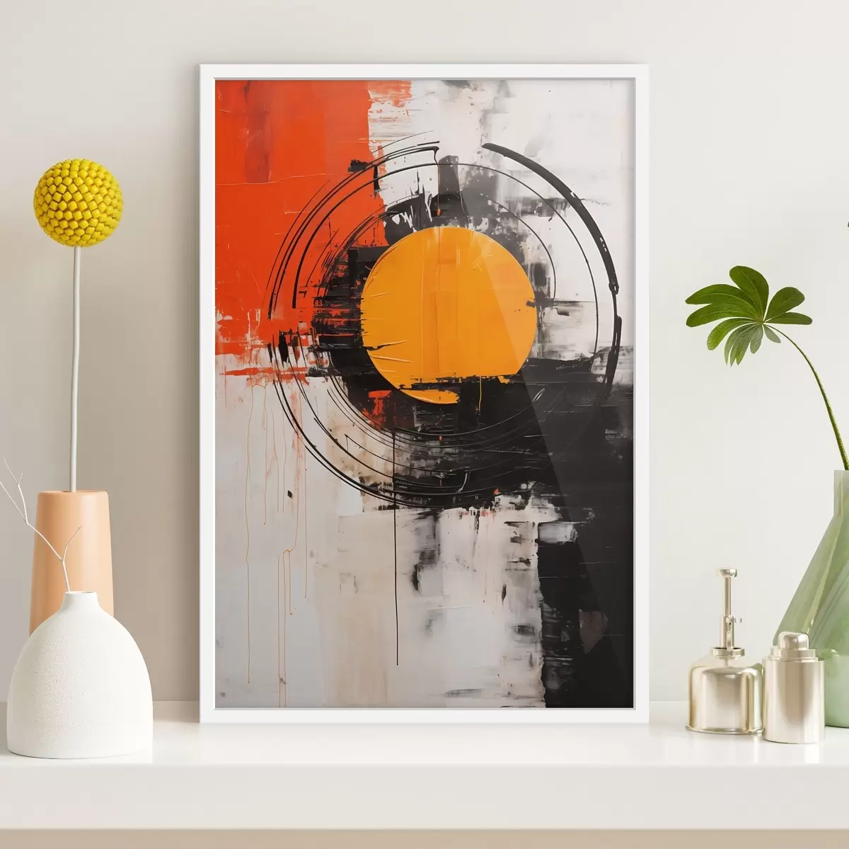 Poster Disque orange dans un anneau noir, traits et éclaboussures Nr f46550