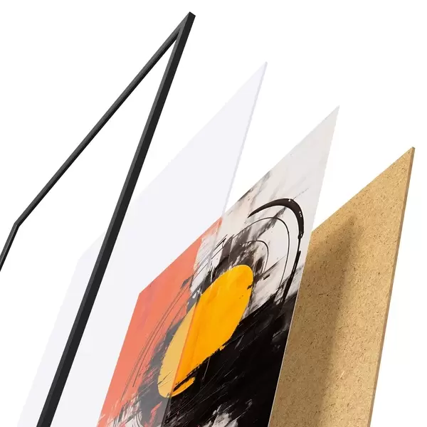 L’affiche encadrée est composée d’un cadre, d’un plexiglas, d’une image imprimée et d’un support en aggloméré. Elle est prête à être accrochée au mur grâce aux fixations situées à l’arrière.