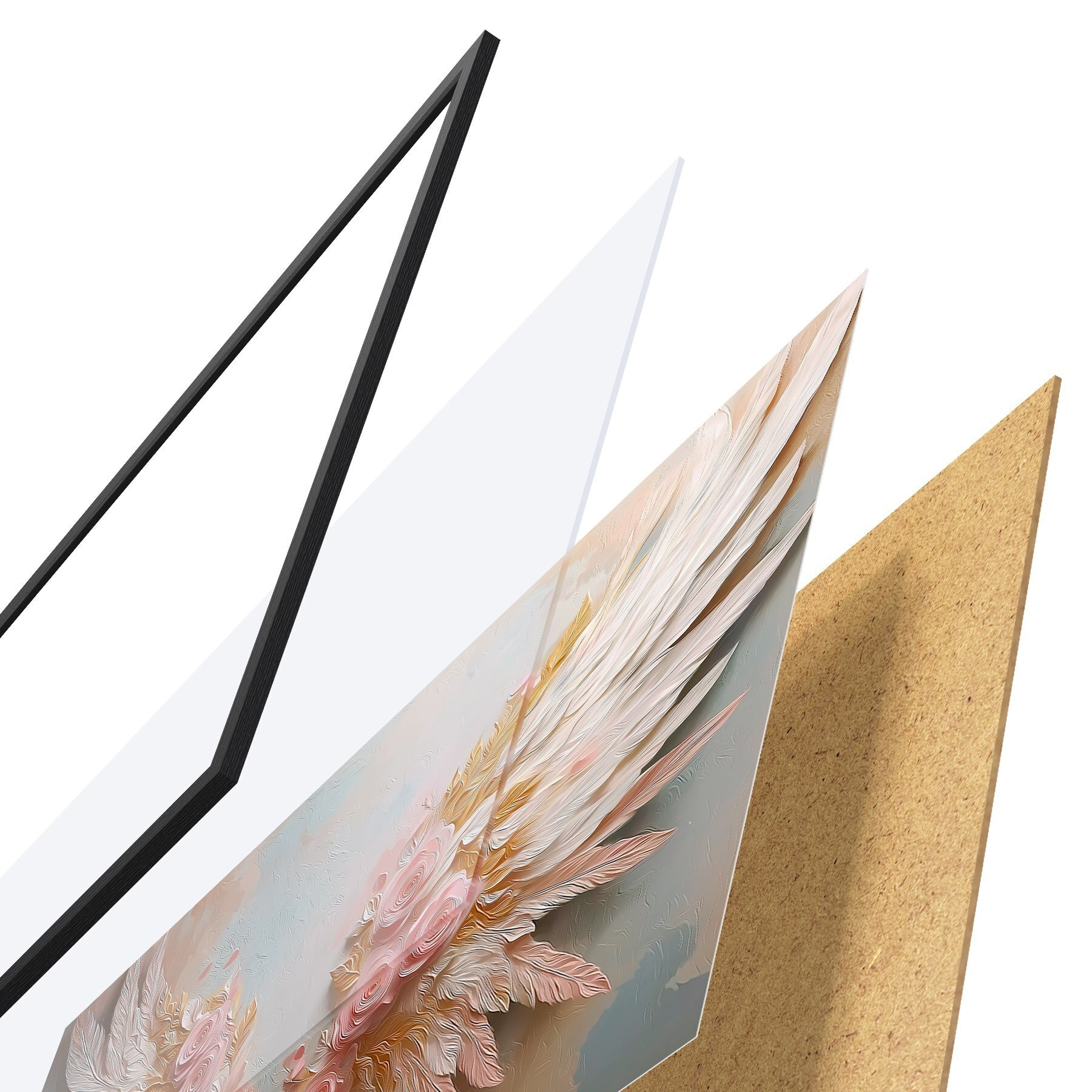 L’affiche encadrée est composée d’un cadre, d’un plexiglas, d’une image imprimée et d’un support en aggloméré. Elle est prête à être accrochée au mur grâce aux fixations situées à l’arrière.