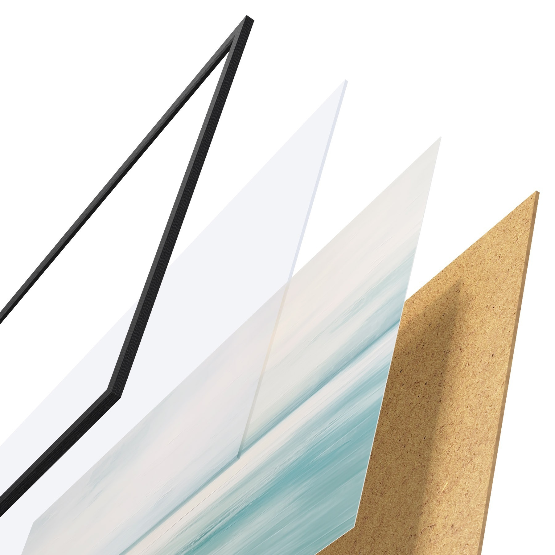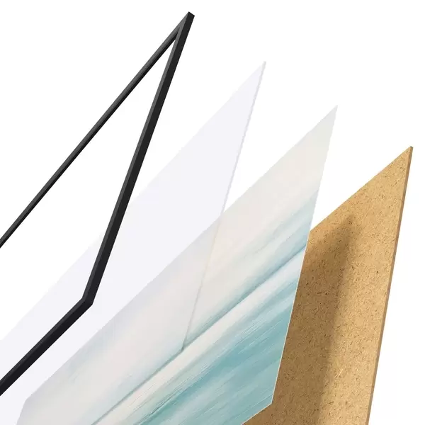 L’affiche encadrée est composée d’un cadre, d’un plexiglas, d’une image imprimée et d’un support en aggloméré. Elle est prête à être accrochée au mur grâce aux fixations situées à l’arrière.